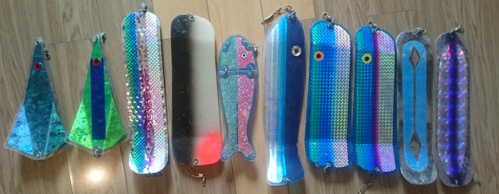 Три оставшиеся железяки вполне достаточно,от остальных избавился.Начиная с середины мая и до конца июня в прибрежных водах скапливается невероятное количество медуз,металлические флэшера гребут их и вертлюги засоряются,пластик в этом плане проще и удобней.