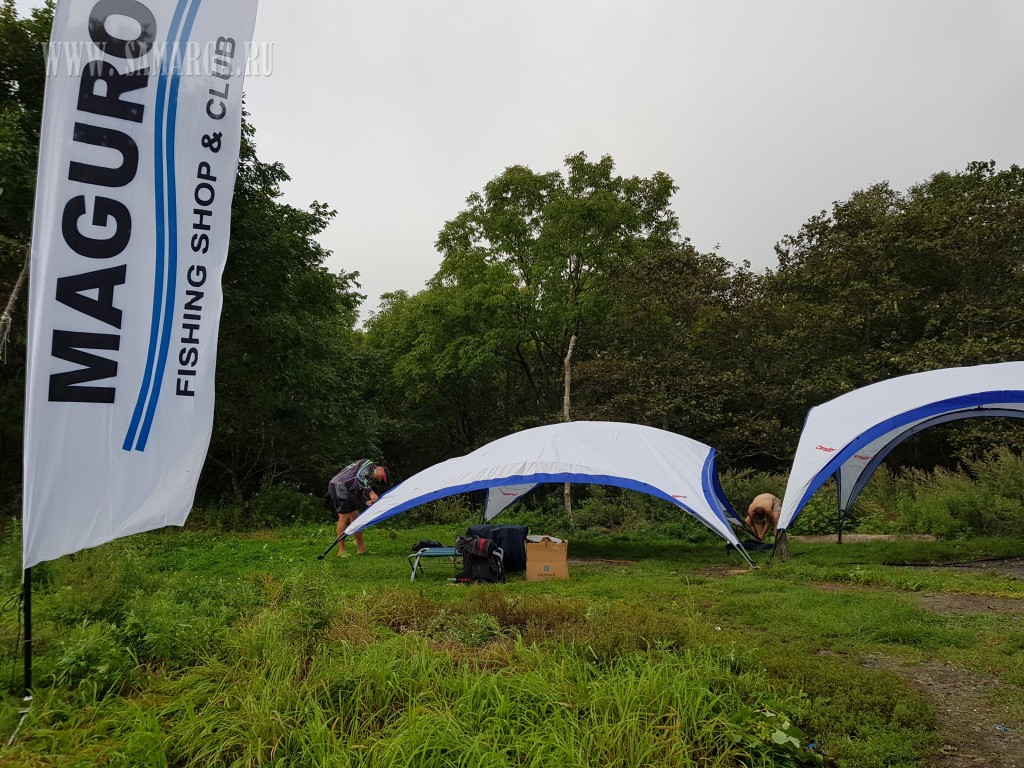 Убрались и приступили к установке шатров под судейскую и под банкет, растановке столов и скамей, воодружению фирменных флагов для обозначения места, организовали место для приготовления главного блюда. На связь ни одна из команд пока не выходила.