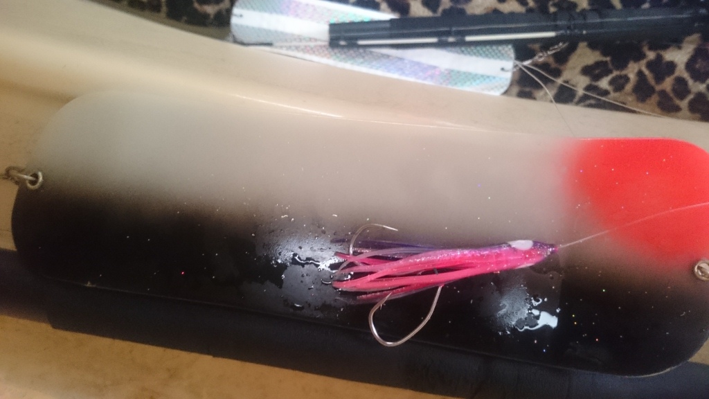 Обычно процесс происходит в определенной последовательности: пришел на рыбное место, скинулся, подобрал глубину и снасти, и начал ловить, но не в это день. Как уже упоминал в предыдущей статье, на точке лова стараюсь оказаться с рассветом, так и сегодня, в 6.10 снасти уже были заряжены. Все как обычно, самый рабочий комплект флэшеров и приманок был заряжен и отпущен на глубину в определенной последовательности. Прошел час,-ни поклевки, звоню товарищу,который рыбачит соседним бортом ,отвечает-взял две на зеленого октопуса, заряжаю октопуса и сразу сход, заряжаю на вторую фиолетового, и снова сход,и опять сход, после еще час ни поклевки. Думаю, ну ерунда,только 8 утра, перехожу на следующий мыс,поклевка-на борту,еще поклевка-на борту,после сход, снова сход,еще один сход и полная тишина в эфире в продолжение двух часов. Перезванивает товарищ,+6на борту, а у меня всего две и масса нереализованных поклевок,значит что-то я делаю неправильно. В моем арсенале, примерно два десятка рабочих флэшеров и около 100 приманок, к 11.00 удалось перепробовать 80% этого добра. Причем, все это происходило монотонно и последовательно, нервы начанали сдавать.На блесна,каракаты и кохи рыба вообще не клевала ,а вот резину(темно фиолетовый октопус с красной подбивкой и золотисто фиолетовый со светонакопителем) стала брать агрессивно, даже разорвала один из октопусов. После того, как удалось подобрать рабочие снасти, не произошло ни одной холостой поклевки и не одного схода!
