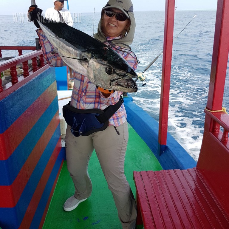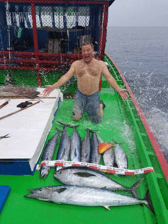 Дополнительный день рыбалки: После таких сходов и обрывов хороших размеров рыбы. Несколько человек из нашей группы, изъявили желание (за отдельную плату) пойти на рыбалку в день вылета домой. Пошли, конечно же, за крайний атолл. Итог: 6 Ваху, 1 Желтоперый Тунец весом около 16 кг. 2 Сабакозубых Тунца, Акула более 2 метров, несколько Групперов. По словам парней, они наблюдали «заварки» подходящего крупного Желтоперого Тунца, которого мы так ждали, но время нахождения нас на Мальдивах подошло к концу, досадно конечно, но есть стимул вернуться и наверстать упущенное.