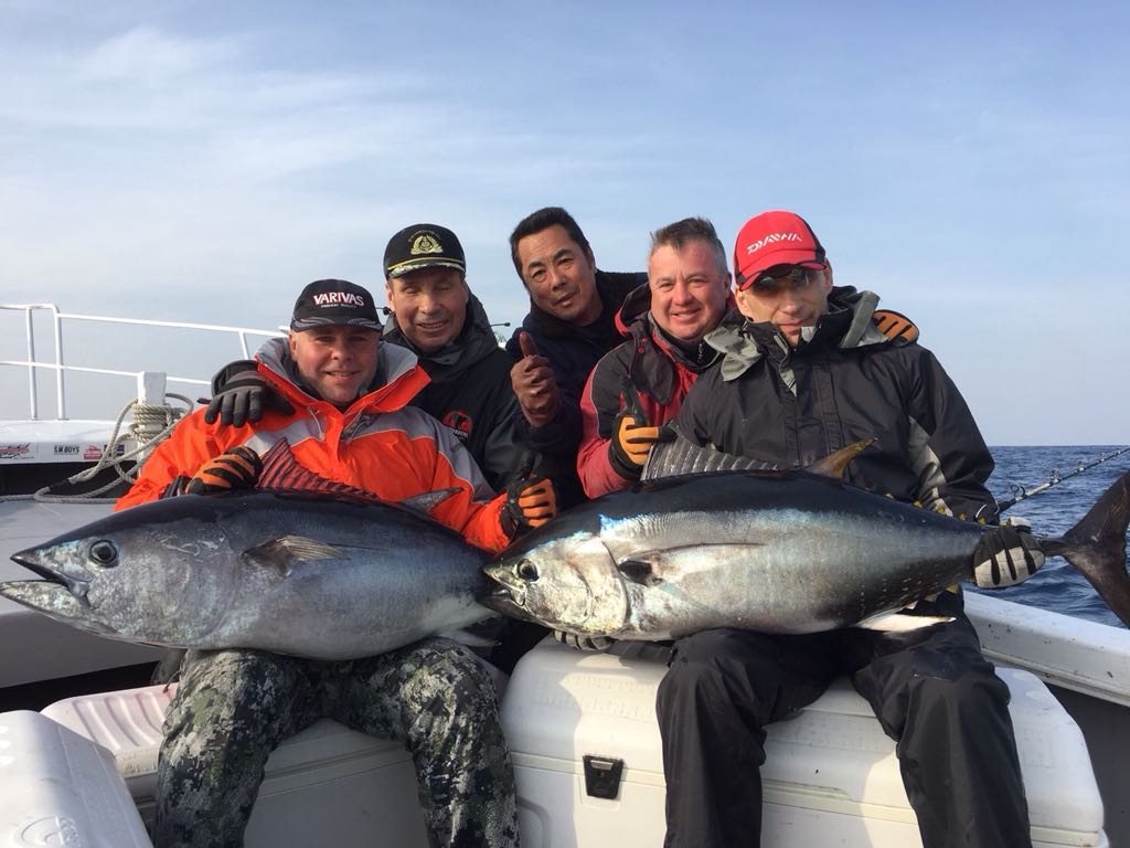 Уже несколько лет подряд наши товарищи участвуют в экспедициях в Японию с целью поймать Синеперого тунца Bluefin Tuna !(Тихоокеанский подвид в длину до 3м весом до 450 кг). Тихоокеанский голубой тунец обитает в основном в северной части Тихого океана от Восточной Азии до побережья Северной Америки. Они попадаются в водах Австралии, Гуама, Канады, Китая, Кореи, Мексики, Папуа — Новая Гвинея, Тайваня, США, Эквадора и Японии. К берегам Роcсии (Приморье, юг Сахалина) подходят в основном в летние месяцы. Эти пелагические рыбы чаще встречаются в умеренных прибрежных водах и обычно не опускаются глубже 200 м, хотя есть данные об их пребывании на глубине 550 м.