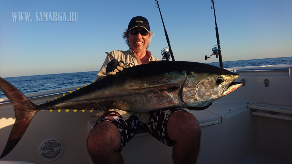 Мой хороший знакомый Алексей П. сейчас находится в Испании и охотится на BFT или синеперого тунца . Еще весной он приглашал меня на эту рыбалку, но к сожалению обстоятельства сыграли против и я не смог составить ему компанию . Вчера рыбачил первый день, и вот что он пишет :писать сил нет, спину сорвал. Этот с боку рта зацепился - капец, думал умру. Жалко его - пока вытаскивал подох, пришлось выкинуть (40-43 кг, около 2000 EUR закупочная цена). Кэп не в