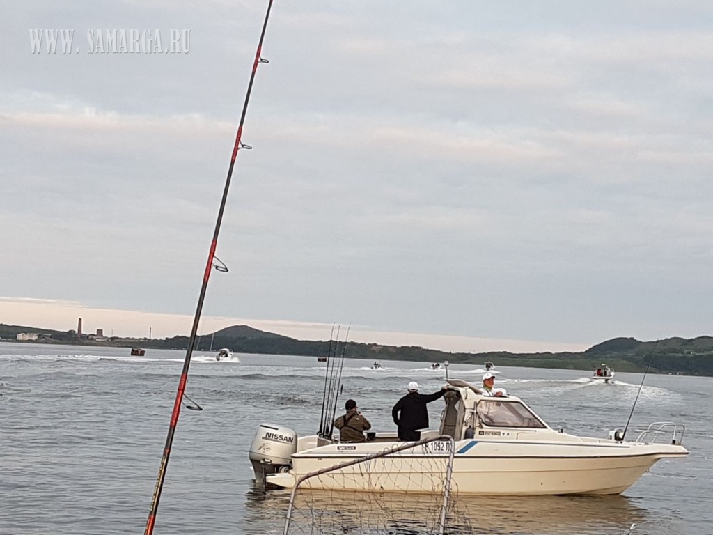 Первые «котлы» были замечены в районе острова Желтухина по направлению к банке Зубра. Несколько команд окружили котел и начали бомбардировать котлы стиками. «Котел» в такой рыбалке означает, что стая лакедры находит клубок корма (анчоус, иваси) и начинает выдавливать его на поверхность, где и происходит атака. Выдавленную рыбу видят чайки, которые также начинают активно кормиться. Именно по чайкам рыбаки и находят косяки.