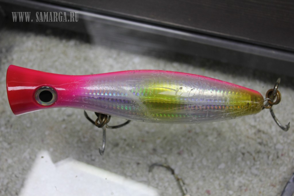 Lure : Shimano OCEA PENCIL 220 F. Думаю, оборвать не должна, но и поднять я ее не могу, в общем, после нескольких попыток победить рыбу, произошел досадный сход.